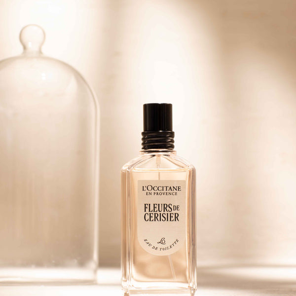 Redescopera Apa de Toaleta Fleurs de Cerisier, reinventata cu un design nou, modern si minimalist, care reflecta patrimoniul cultural al Maison L’Occitane en Provence.