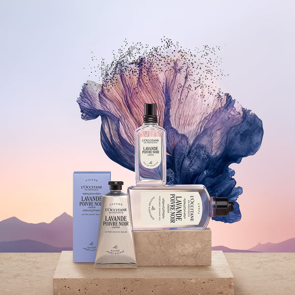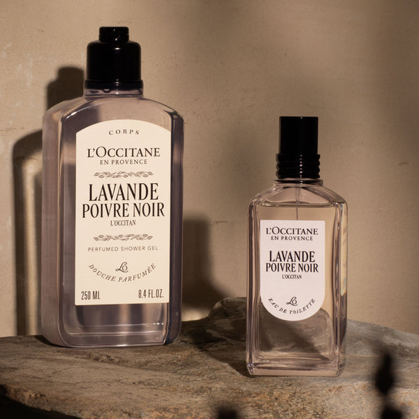 Redescopera Apa de Toaleta Lavande Poivre Noir, reinventata cu un design nou, modern si minimalist, care reflecta patrimoniul cultural al Maison L’Occitane en Provence.