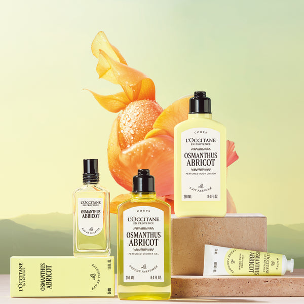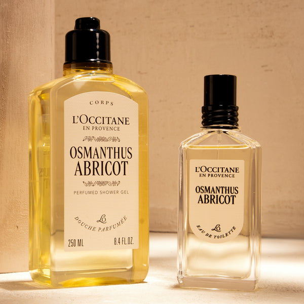 Redescopera Apa de Toaleta Osmanthus Abricot, reinventata cu un design nou, modern si minimalist, care reflecta patrimoniul cultural al Maison L’Occitane en Provence.
