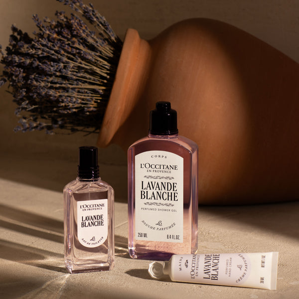 Redescopera Apa de Toaleta Lavande Blanche, reinventata cu un design nou, modern si minimalist, care reflecta patrimoniul cultural al Maison L’Occitane en Provence.