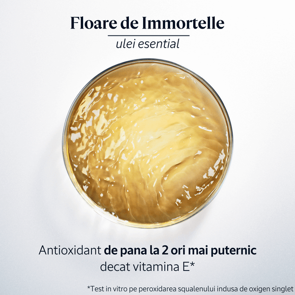 Echipele L'Occitane en Provence au descoperit proprietatile antioxidante si anti-imbatranire ale acestui ulei esential din Corsica. Actioneaza (ajuta) împotriva pierderii fermitatii pielii si reduce aspectul ridurilor. -